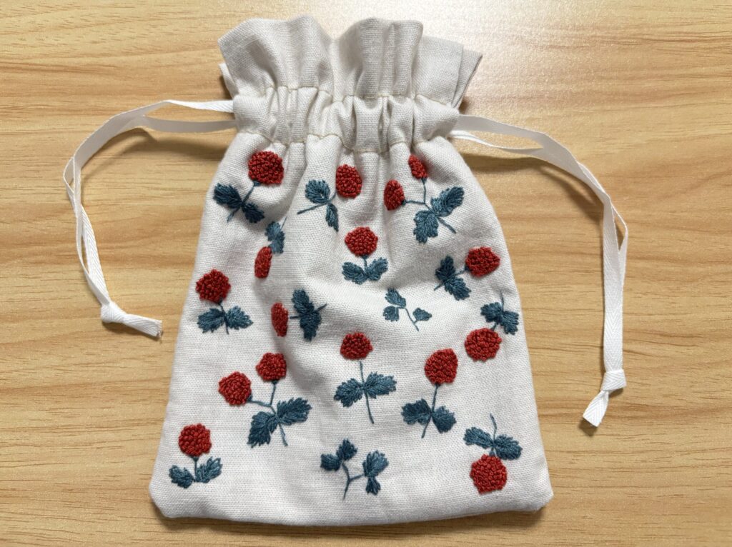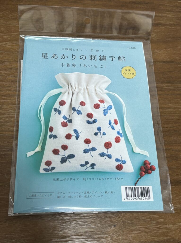 「星あかりの刺繍手帖 ~巾着袋「木いちご」~」okadayaで購入しました。