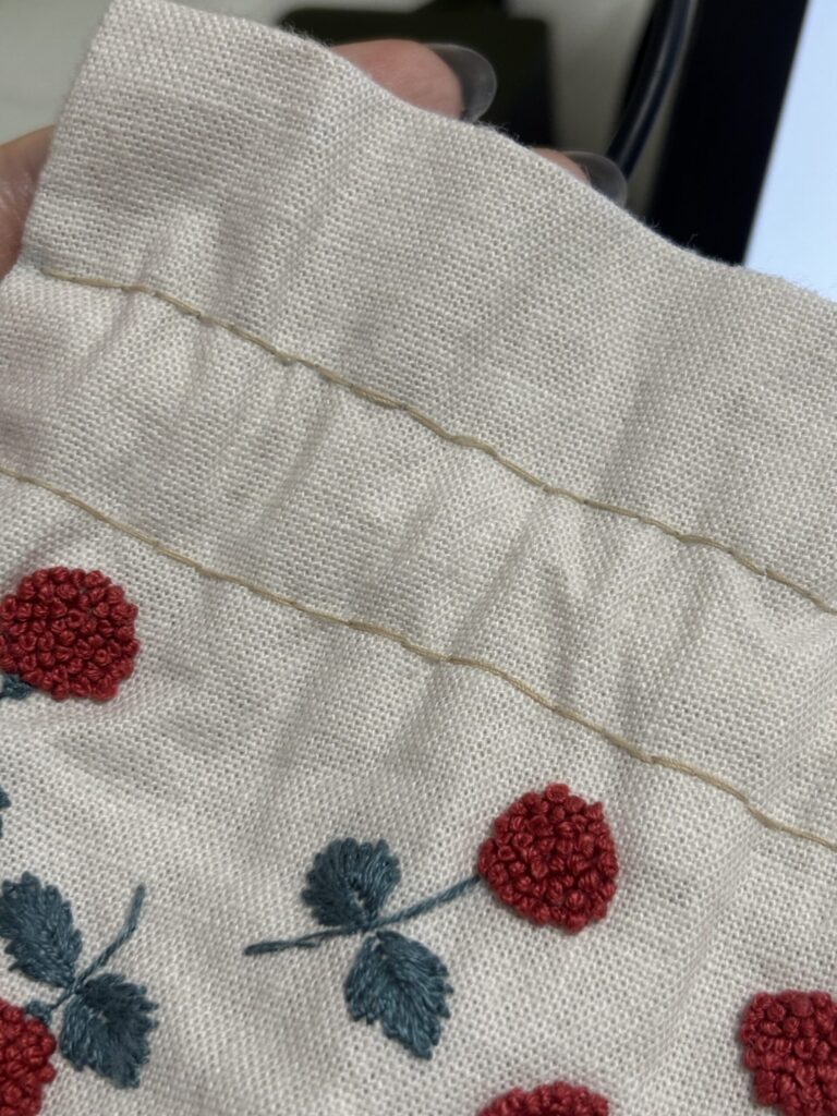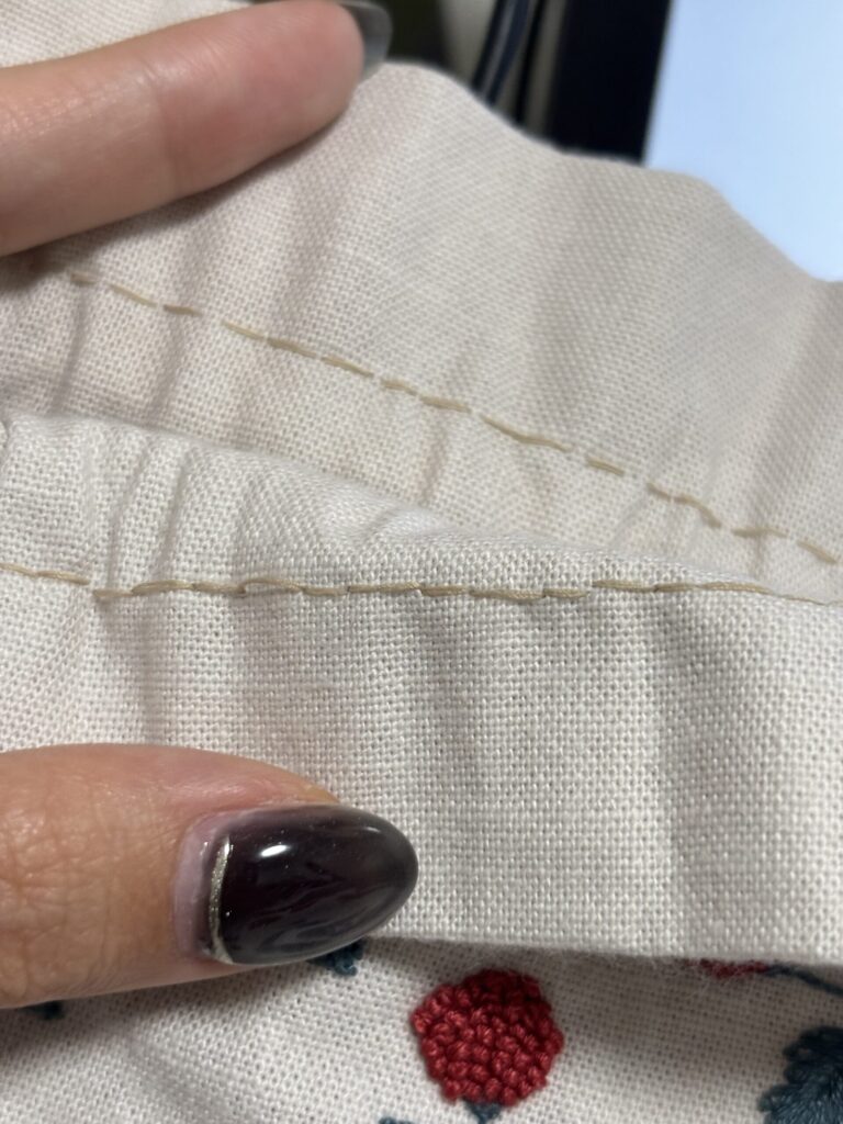 ですが、巾着紐を通す部分の縫い目は表も裏も見えるので気を付けましょう。