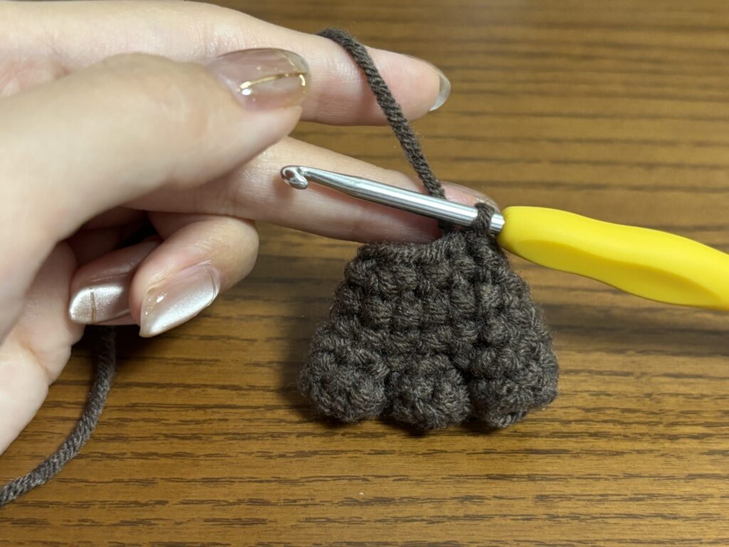 頭と胴体の目数が合わないので、6か所頭の方で調整を行う。