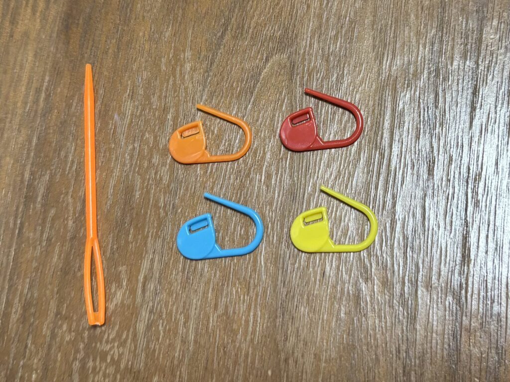 - 用具(6/0かぎ針 1本・段数マーカー4個・プラスチック閉じ針1本)