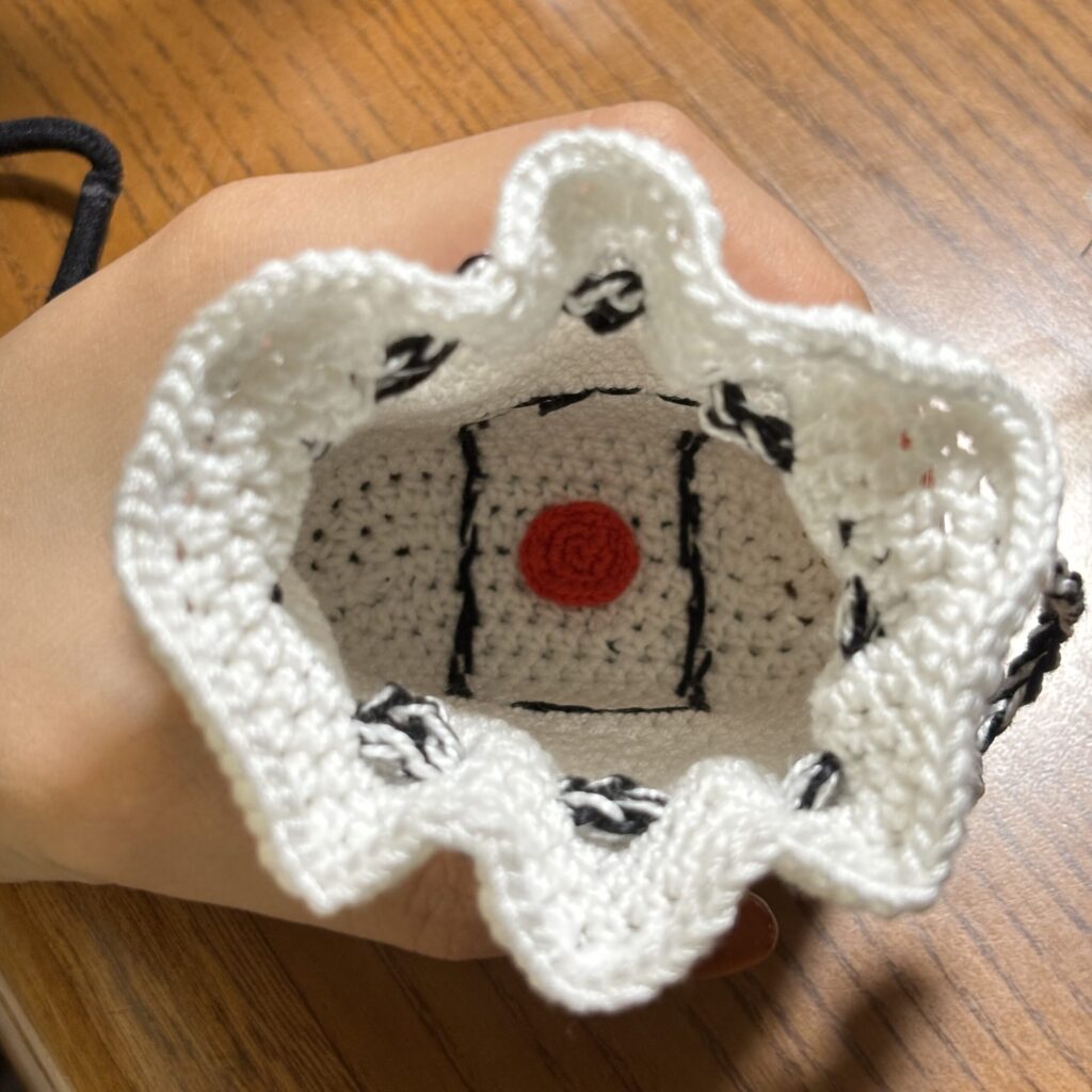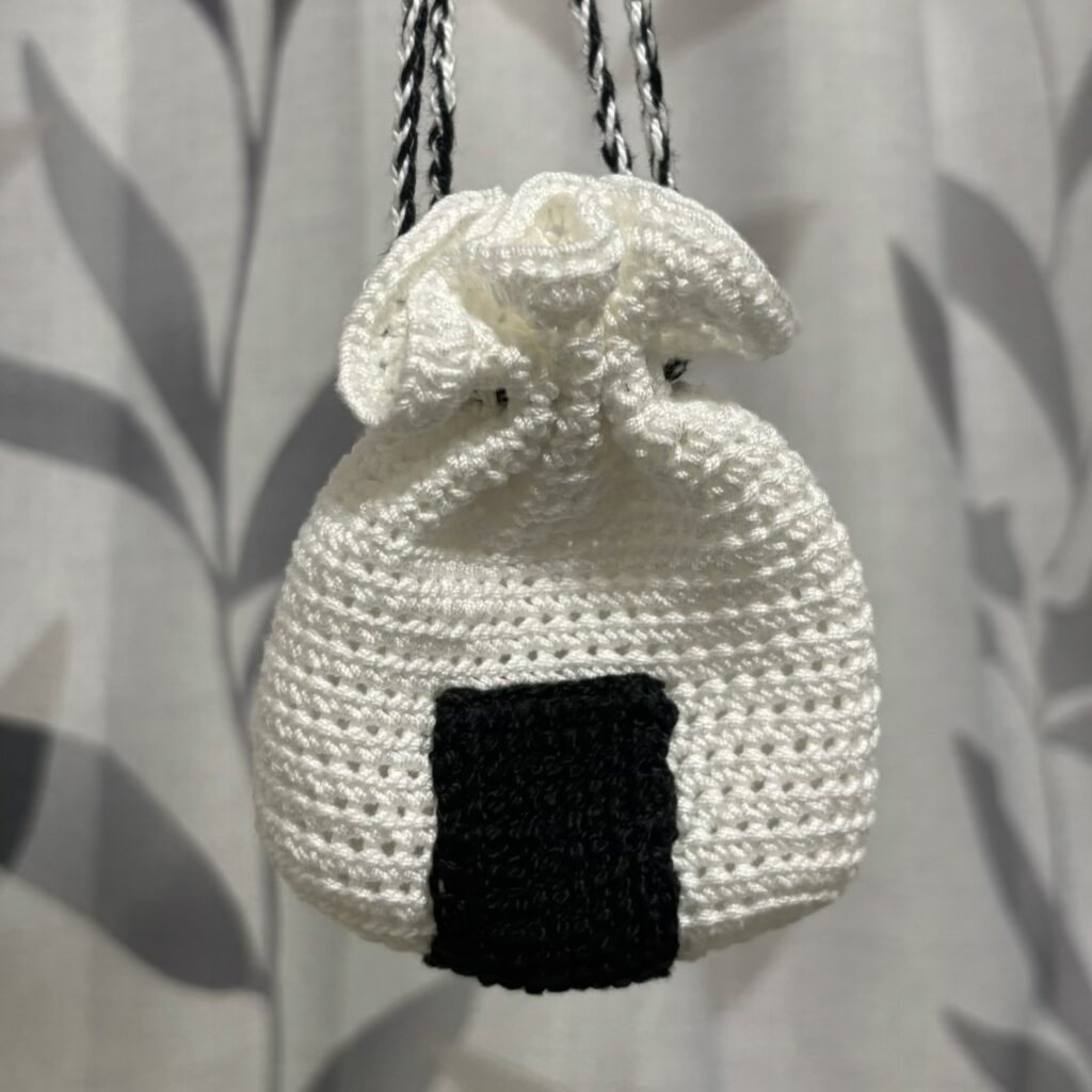 巾着紐はお米と海苔の部分で使用した糸を両方使用し、好きな長さになるまで鎖編みしました。