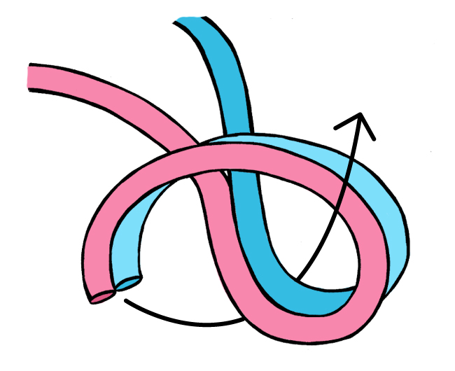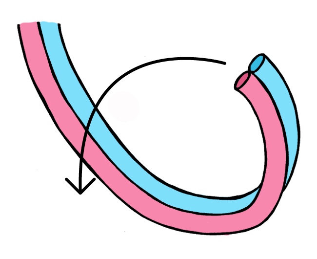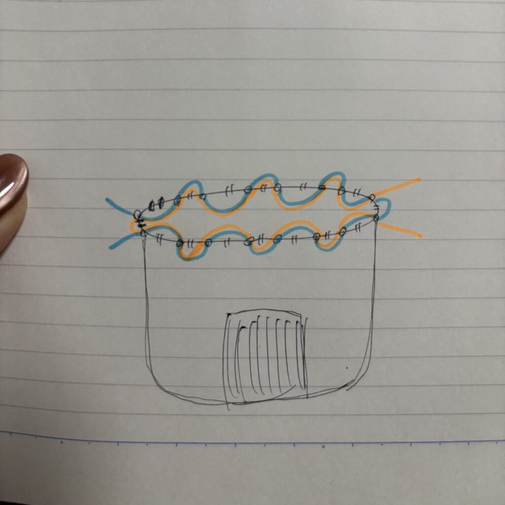 お米の17段目と18段目の間に、間隔が2目になるよう巾着糸を通していきます。