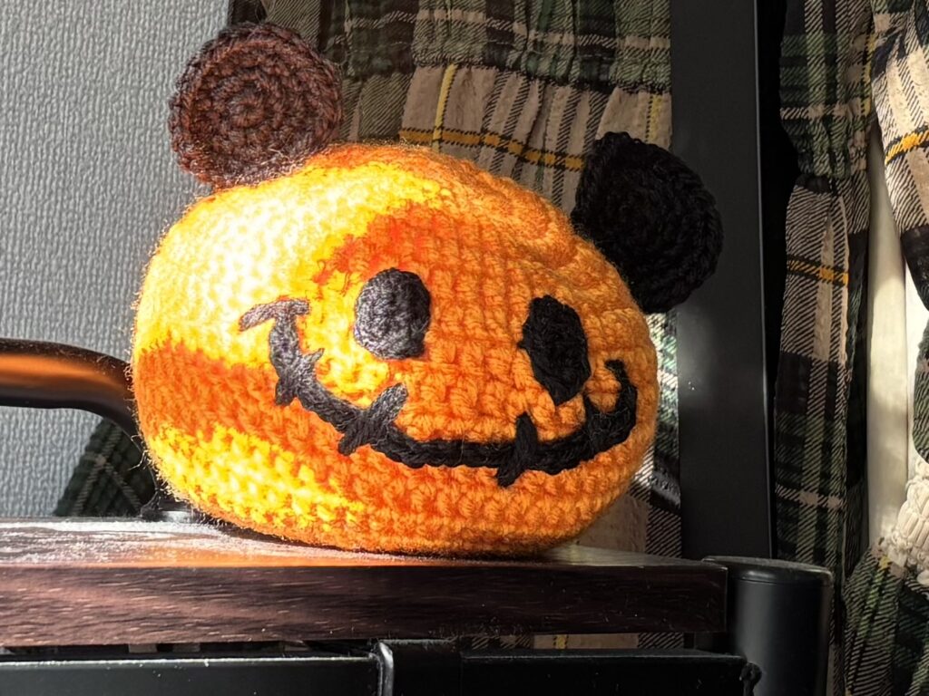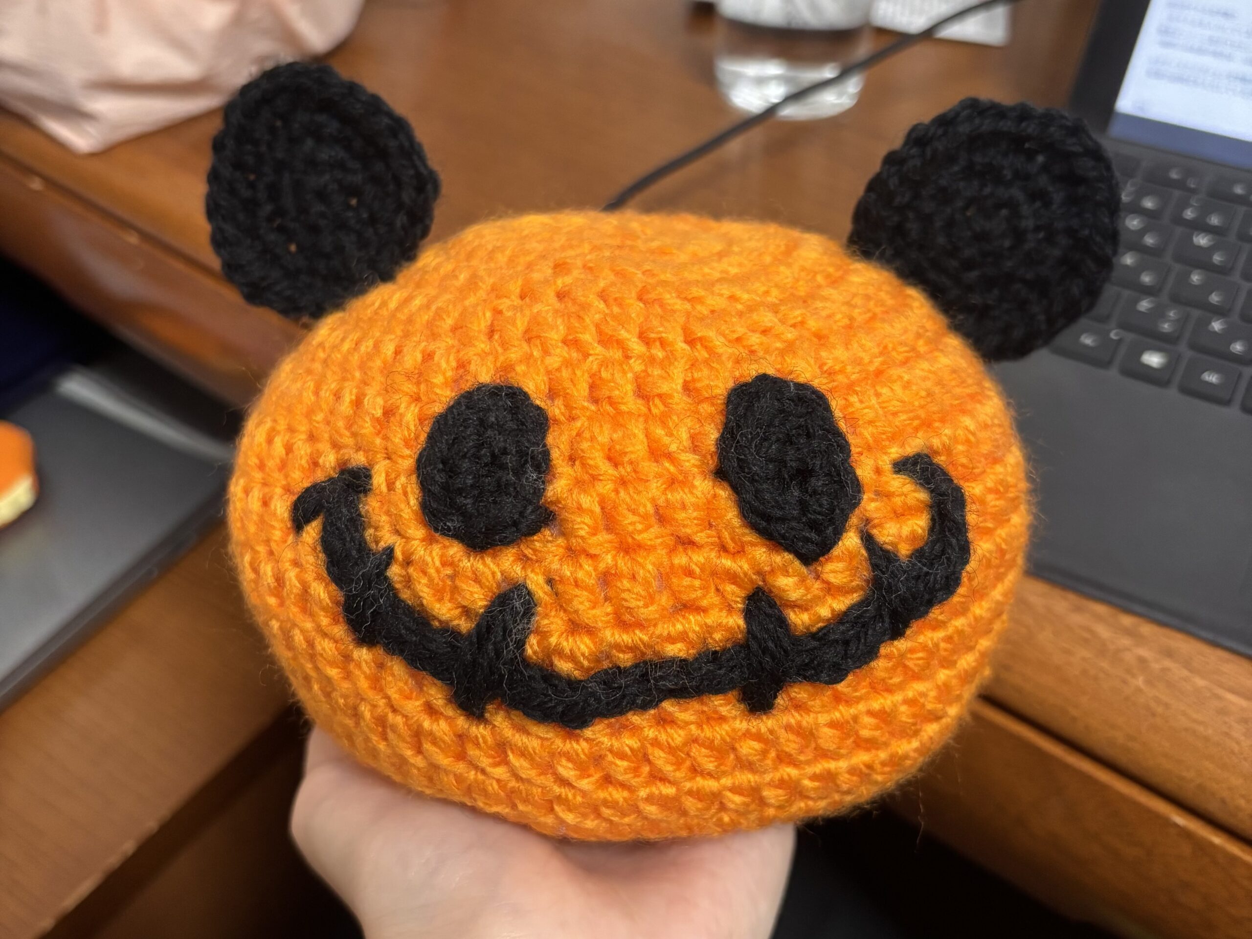 が、自己流で作り始めたばかりにカボチャの凹凸が作れず、ただのオレンジの楕円体が完成。