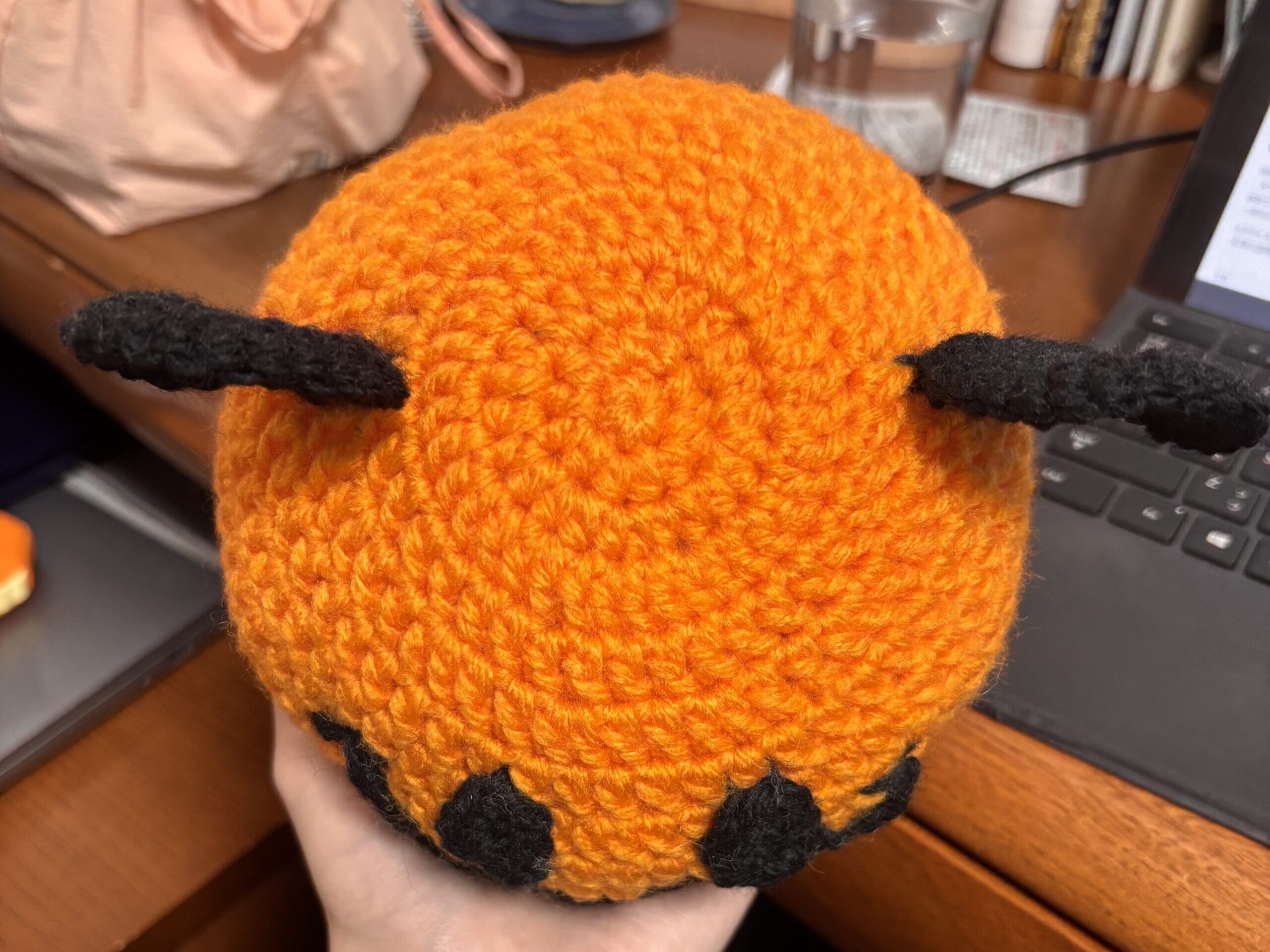 目は楕円になるように増し目の位置を調整し、耳はただの円で作ってます。