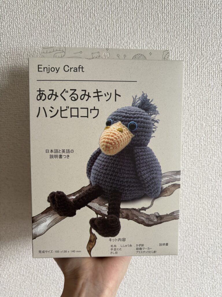 最近ハシビロコウにハマっていて、先日お店であみぐるみキットを見かけたのでつい買っちゃいました…。