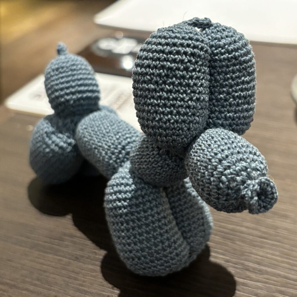 綿を中に詰めており、直線的に編んだあと、風船のバルーンドックのようにねじって形を作ります。